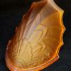 - This shade is dark Amber in color and has Art Deco Styling. There is a leaf and fan relief along the lower part of the shade