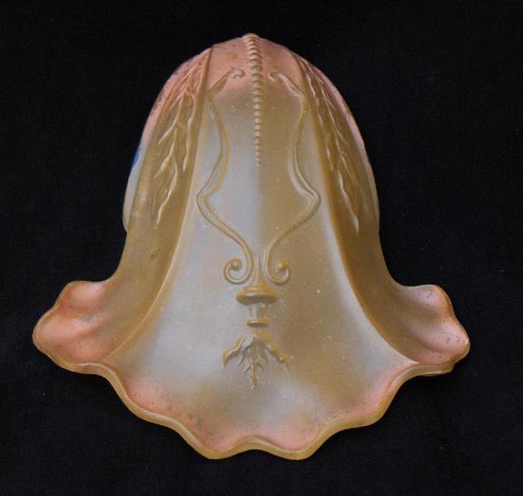We stock replacement shades as they become available to us. They are not reproduction. They are original from their eras, therefore "flea bites" and chips are common especially in the fitter area which are usually not easily seen when the shade is installed. Any large chips, cracks or blemishes will be noted in item description, otherwise shades are sold "As-is".